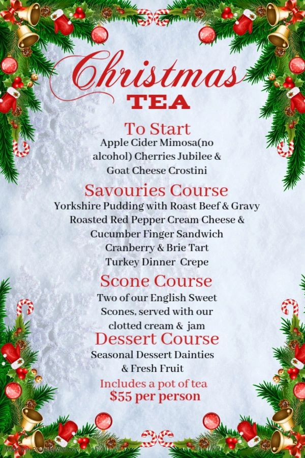 Due to our intimate size, we will require from groups of 6 or more that book for our Afternoon Tea, a 25% deposit at the time of booking to hold the table for you; (the total cost for Afternoon Tea is $50 + HST PER PERSON). These payments can be made by credit card. Your final guest count will be required 2 days before the reservation date, and you will be charged for the total guest number you tell us on your reservation date. Should someone in your party be unable to attend on the day of, we will package the serving of food & tea as a to-go package. We apologize for any inconvenience, but we will be turning away other customers to seat your larger group, so we have found this is the best method for managing larger groups.