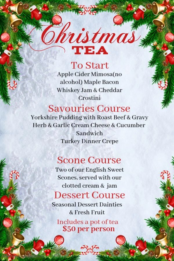 Due to our intimate size, we will require from groups of 6 or more that book for our Afternoon Tea, a 25% deposit at the time of booking to hold the table for you; (the total cost for Afternoon Tea is $50 + HST PER PERSON). These payments can be made by credit card. Your final guest count will be required 2 days before the reservation date, and you will be charged for the total guest number you tell us on your reservation date. Should someone in your party be unable to attend on the day of, we will package the serving of food & tea as a to-go package. We apologize for any inconvenience, but we will be turning away other customers to seat your larger group, so we have found this is the best method for managing larger groups.